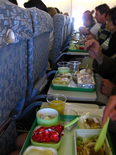 Rond half tien arriveren we op Schiphol om ons als groep te verzamelen bij de incheckbalie van onze vlucht naar Thailand. Na het inchecken en de paspoortcontrole dwalen we in en om de winkels om de tijd te doden tot we naar de gate wandelen voor een veiligheidscontrole. Even later zoeken we onze plaats op in het lijnvliegtuig van EVA Air en krijgen al gauw een exotische lunch geserveerd.
