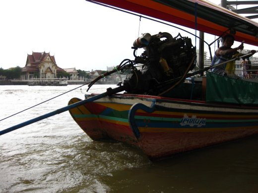Per gemotoriseerde longtail-boat vertrekken dagelijks talloze toeristen voor een tocht over de rivier Chao Praya en het nauwelijks aangetaste oude kanalennetwerk.