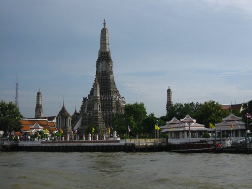 De Tempel van de Dageraad (Wat Arun) is één van de bekendste monumenten van Bangkok. De prangs zijn bedekt met een laag van duizenden porseleinscherven. De grote prang is 79 meter hoog en aan de onderkant 234 meter in omtrek. In de 19e eeuw voegde koning Mongkut (Rama IV) de ornamenten van gebroken porselein toe.