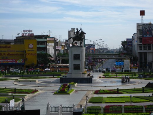 Dit moderne ruiterstandbeeld aan de Wongwian Yai-rotonde is gemaakt ter ere van koning Taksin (1767-1782), die na de verwoesting van Ayutthaya door de Birmezen in 1767 de hoofdstad naar Thon Buri verplaatste.
