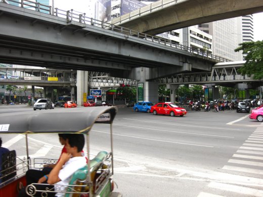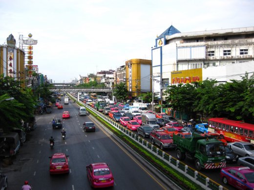 Bangkok groeit erg hard en heeft daardoor zoveel last van files dat de gemiddelde snelheid van een auto bijna overtroffen kan worden door een voetganger. Gelukkig bouwen ze hier veel voetgangersbruggen waardoor de looptijd nog verkort kan worden.