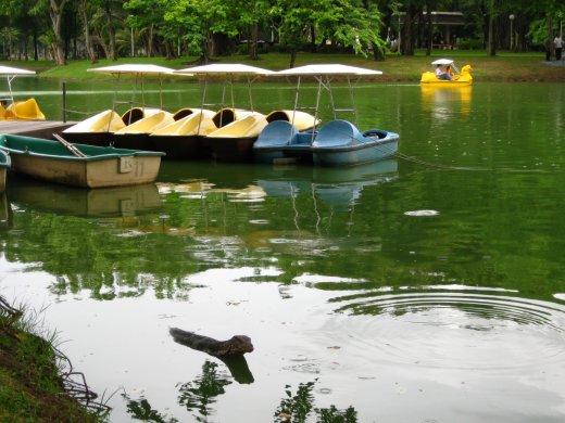 De vijvers van dit stadspark blijken ook een aantal vreemde gasten te herbergen: varanen. Deze hagedissen kunnen zo groot als alligators worden. Buitenlanders vinden dit maar een vreemde gewaarwording, maar de Thai boeit het niet.