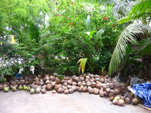 Onderweg naar de drijvende markt, wordt er ook een tussenstop gemaakt bij een kokosnootplantage. Hier kopen we kokossnoepjes en andere lekkernijen en kunnen we even rondkijken hoe kokos wordt verwerkt.