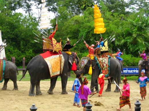 Als laatste onderdeel komen er olifanten in oorlogstenue opdraven om de oude koninklijke veldslag uit de Ayutthaya-periode te laten herleven. Olifanten speelden in vorige eeuwen/millennia naast lastdier namelijk ook een grote rol bij veldslagen en belegeringen, het waren eigenlijk een soort ouderwetse tanks. Een krijgsolifant was groot en sterk en had lange en puntige slagtanden. Aan het hoofd en de zijkanten was hij behangen met metalen platen. De goedbeschermde ruiters vochten met sabels, zwaarden en werpsperen.