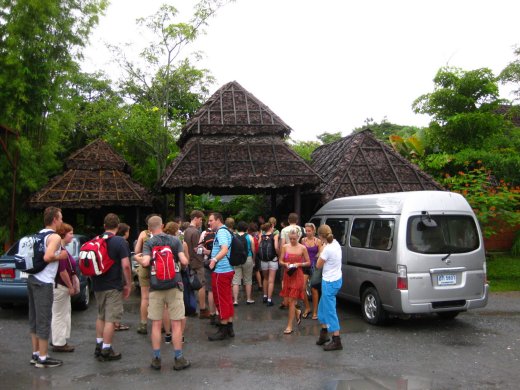 We slapen deze dag eerst uit want we hoeven pas om half negen te vertrekken. Helaas regent het, maar de jungle is nog ver weg. Met drie pick-up trucks gaan we op weg naar de toeristenpolitie om ons aan te melden als jungle-trekkers en een kopie van onze paspoorten af te geven, voor het geval er iets zou gebeuren.