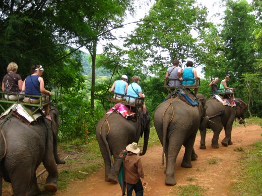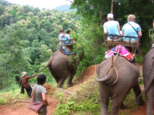 In tegenstelling tot de Afrikaanse familie kan alleen de Aziatische olifant worden getemd en opgeleid om te werken. Het dier loopt echter regelmatig richting wat lekkere versnaperingen langs de kant van de weg. De mahouts, de olifantentrainers weten alle olifanten weer in het gareel te krijgen en begeleiden deze kleine stoet over het parcours. Af en toe loopt het pad aardig naar beneden en moeten we ons goed vasthouden om geen eventuele harde landing te maken.