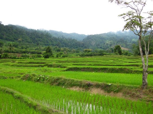 De tocht op de rug van deze grijze jumbo is een geweldige ervaring, maar het spectaculaire landschap met bergen, tropisch regenwoud en rijstterrassen doet ons bijna nog meer versteld staan.