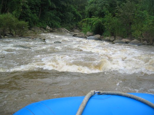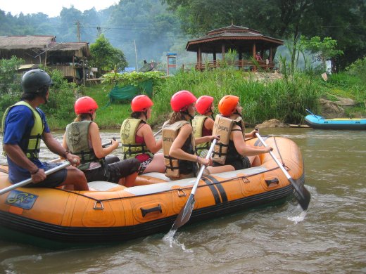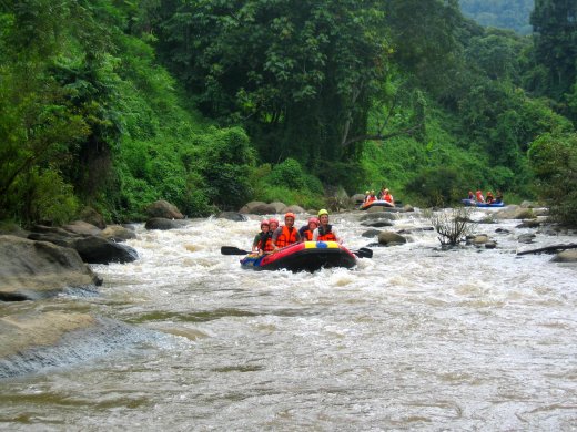 In het regenseizoen verandert de moesson de Mae Tang rivier in woelig water als dit uit het tropisch regenwoud en de bergen noordelijk van Chiang Mai zijn weg zoekt door de vallei. Hierdoor ontstaat het zogenaamde White Water Rafting met stroomversnellingen van klasse 3 of 4. Het is nog een hele toer om de grote keien, waarmee deze rivier bezaaid is, goed te ontwijken.
